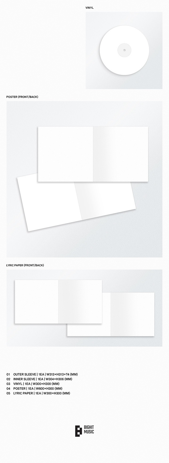 Group Red Vinyl, RM Silver Vinyl, Jin Pink Vinyl, SUGA Clear Vinyl, j-hope Cream Vinyl, Jimin Burgundy Vinyl, V Velvet Red Vinyl, Jung Kook Orchid Vinyl.