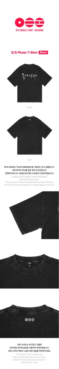 Официальный товар в честь мирового тура BTS 'ARIRANG'. Это фото-футболка, передающая атмосферу и настроение тура. На передней стороне расположено фото артиста, выполненное в винтажном стиле.